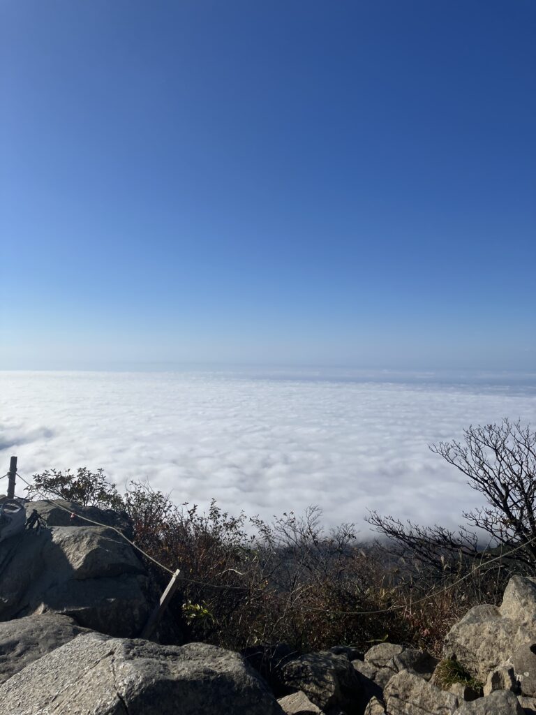雲海が綺麗に広がっていている。早く登ったこともあり頂上には人もいない。独り占めしているようで贅沢な感じ。
